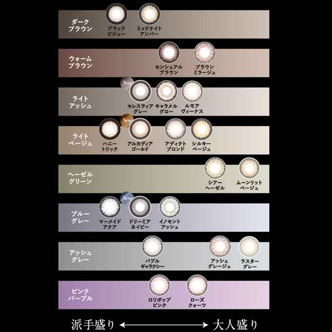 ■製造販売元:アイレPegavision Japan 株式会社(ジャスミンアイビー,ムーンリットベージュ,センシュアルブラウン)