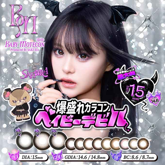 (1箱10枚入)カラコン 1day ベイビーモテコン ワンデー 度なし 度あり カラーコンタクトレンズ 15.0mm デカ目 矢野桜