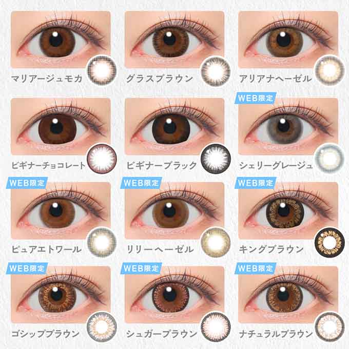 ナチュラルブラウン,アリアナヘーゼル,シェリーグレージュ,リリーヘーゼル,ゴシップブラウン,