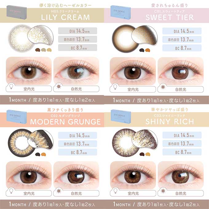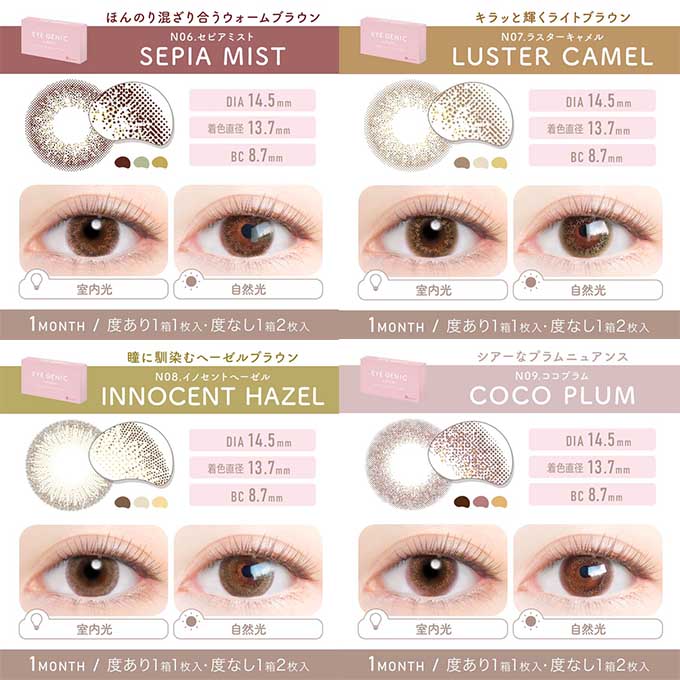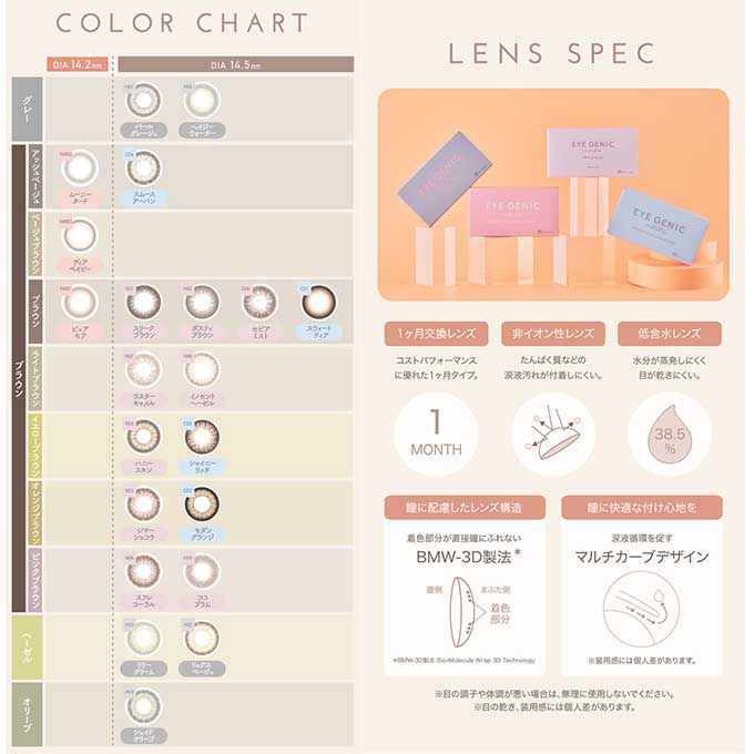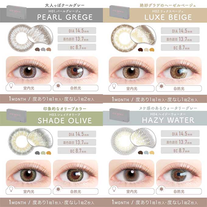 カラコン 1ヶ月交換 度あり アイジェニック バイ エバーカラー 2箱2枚(1枚入×2) ナチュラル系 カラーコンタクトレンズ 1month/マンスリー 新木優子 14.5mm