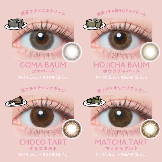 カカオワッフル,マッチャタルト,メープルシフォン,チョコタルト,ゴマバーム,ホウジチャバーム,フラワームーン,クリームマカロン,バターファッジ