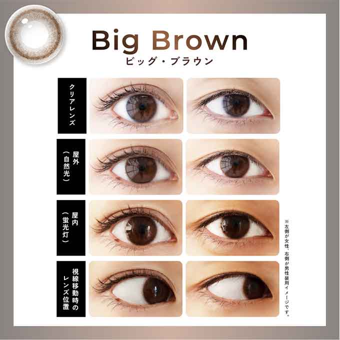 ■使用期限:開封後1日 ■カラー:ザ・ブラック,ビックブラウン,アメリカングレー ■入り数:1箱10枚入 ■含水率:42.5% ■DIA:14.2mm ■着色直径:13.4mm/13.6mm ■BC:8.7 ■度数:±0.00, -1.00~-5.50(-0.25ステップ), -6.00~-8.00(-0.50ステップ) ■UVカット:吸収率:UV-A波83%/B波98% ■承認番号:22600BZX00273A20 ■製造販売元:TIVマーケティング株式会社