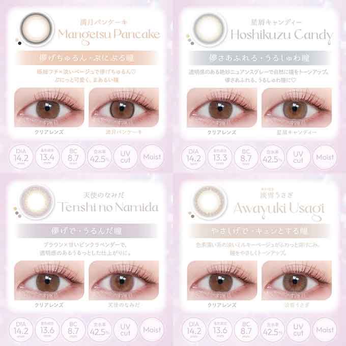 天使のなみだ,淡雪うさぎ,満月パンケーキ,星屑キャンディー